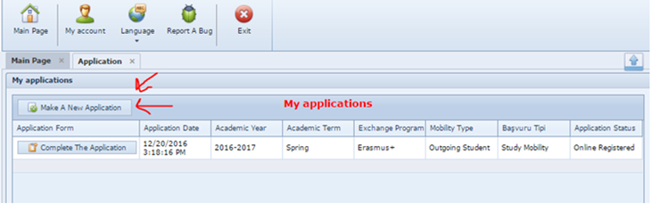 - If you are planning to apply for both the Study and Internship (Placement) Mobility, you must create separate application for each mobility by clicking Make a New Application button and submit them separately.